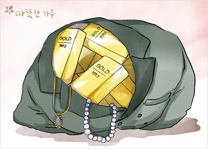 온갖 보석과 금괴를 차마 버리지 못하고