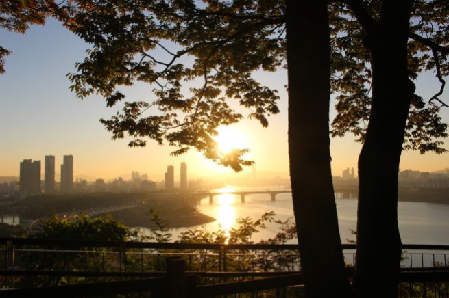 아침의 운무가 낀 창가에서